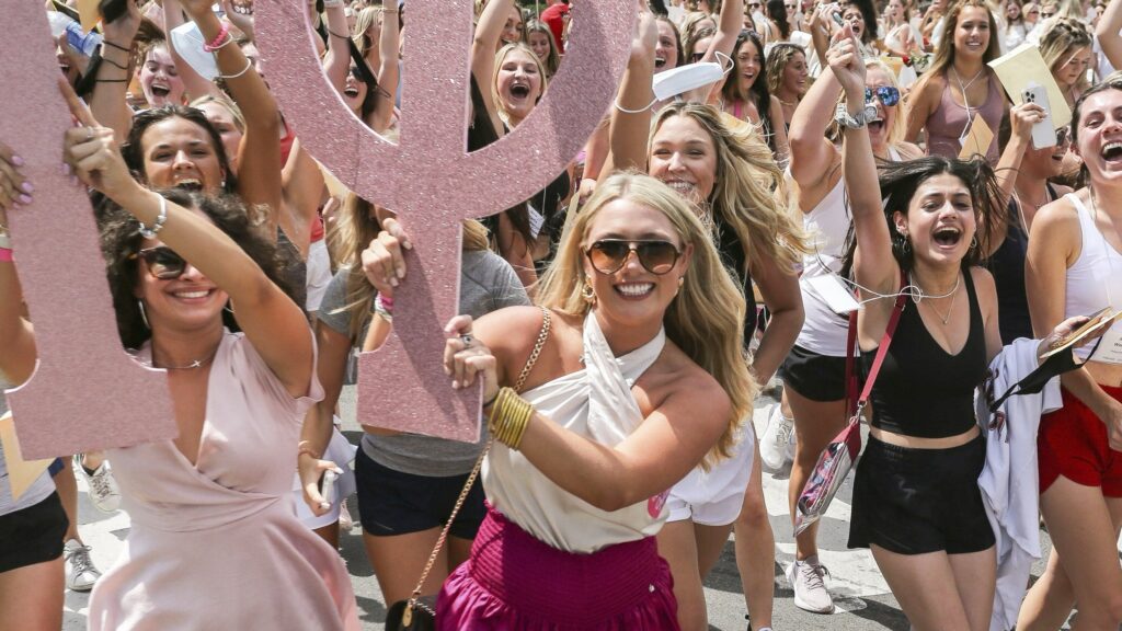 This new franchise isn’t just riding on the viral wave of #BamaRush. It’s betting everything. At the time of writing in May 2023, the TikTok hashtag has earned a staggering 2.6 billion views, making the University of Alabama’s recruitment week a top-tier media event. Imagine sparkly dresses, scripted Southern hospitality, Greek letter sweatshirts, and thousands of teens streaming every emotional breakdown live.
