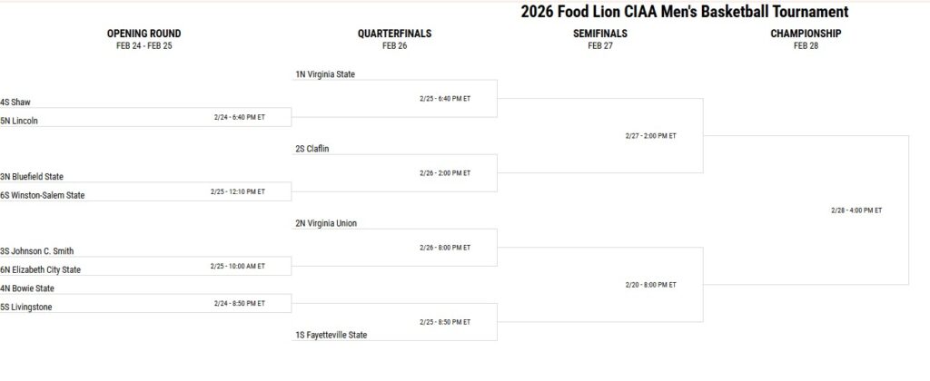 On the women’s side, Fayetteville State will seek a third straight CIAA championship after last season’s 64-56 title-game win over Virginia State. The Broncos enter as the Southern Division’s No. 2 seed and are attempting to join a short list of programs with three consecutive conference crowns.