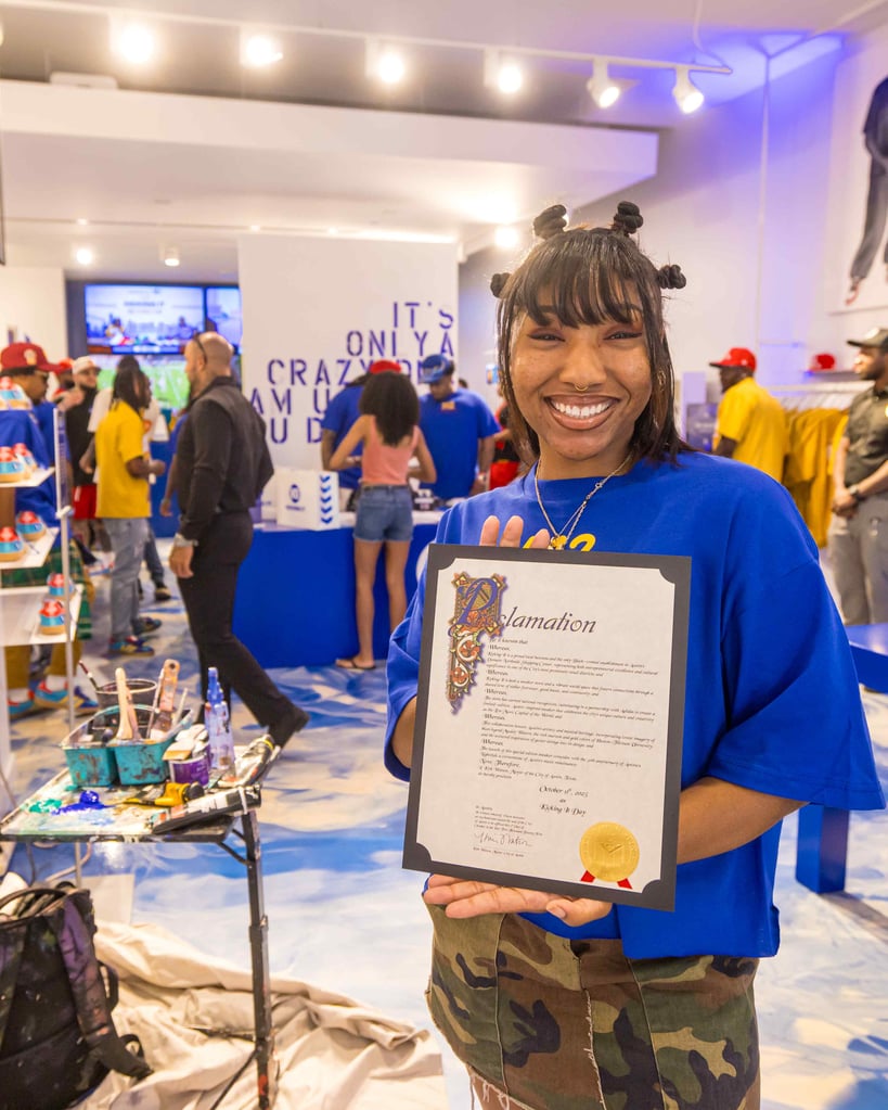 Through the collaboration, Kicking It also continues its NIL partnerships with HBCU athletes, an effort Dorsey says is about representation and access. “We’re the only sneaker store in Texas doing NIL deals with HBCU athletes,” he explained. “We know how it feels to be looked over, and we want these students to know their voices matter. Hopefully, this inspires the next generation to show them this isn’t their ceiling.”