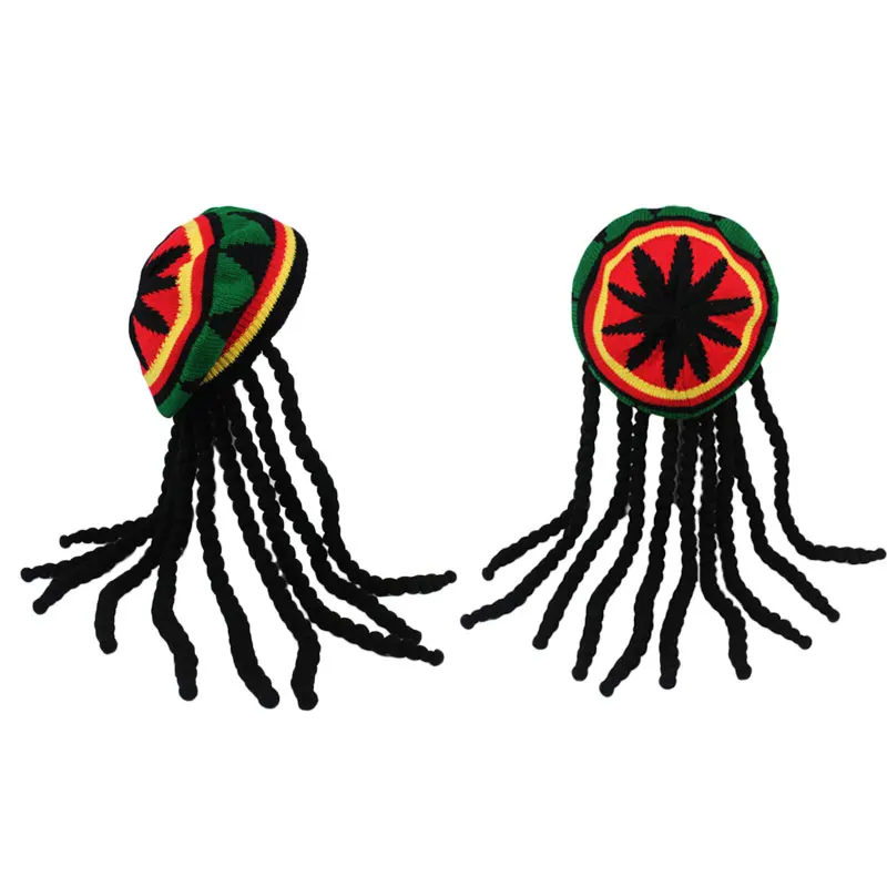 Hip Hop Cap Knitted Wig Braid Hat Unisex Jamaican Bob Marley Rasta BeanieÂ
